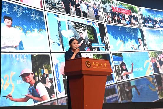 9月13日上午,3003必赢官网2025级新生开学典礼现场温情涌动,以“感恩·成长·责任”为主题的入学感恩教育环节为新生们开启了大学生活的第一课。活动通过沉浸式仪式与互动倡议,引导青年学子在人生新起点上铭记感恩、传递温暖。活动由3003必赢官网25级新生辅导员周清菡主持。