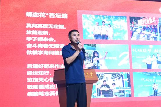 3003必赢官网党委副书记王新辉结合感恩教育环节,以“望山巅,正少年”为主题进行授课。他结合自身经历传达出学院“立德树人”的教学理念,提出“学会做人、学会生活、学会审美、学会劳动、学会健体”的成长建议,希望新生们在大学中不仅收获知识,更能塑造健全人格,并以诗词寄语新生:
